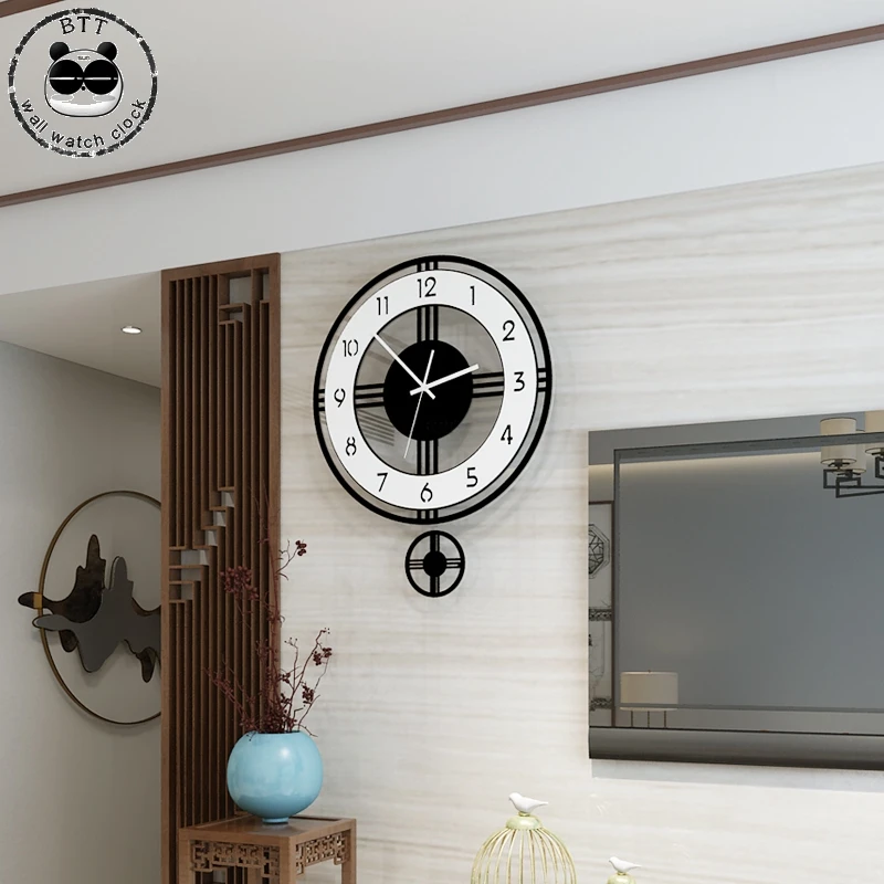Style Ancienne Grande Horloge Pendule Murale Ronde A Balancier De Cuisine Salon Pendule Murale Pendule Horloge Grande Horloge