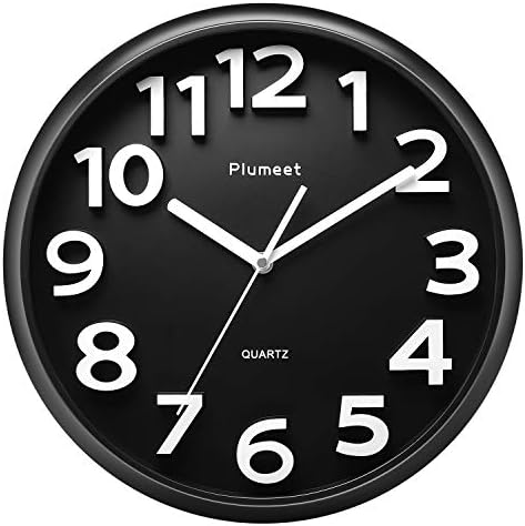 Plumeet Grande Horloge Murale Noir Deux 25cm Horloge Murale Decorative De Qualite Pour Maison Cuisine Bureau Ecole Fonctionne Sur Pile Mecanisme Silencieux A Quartz Ameublement Et Decoration Cuisine Maison