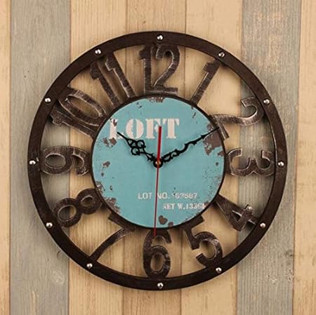 Chlch Grande Horloge Murale Silencieuse Silencieuse Aucune Cuisine De Salon De Cuisine De Decoration De Tickvent Industriel Vieux Creux Bleu 16 Pouces Ameublement Et Decoration Pendules Murales