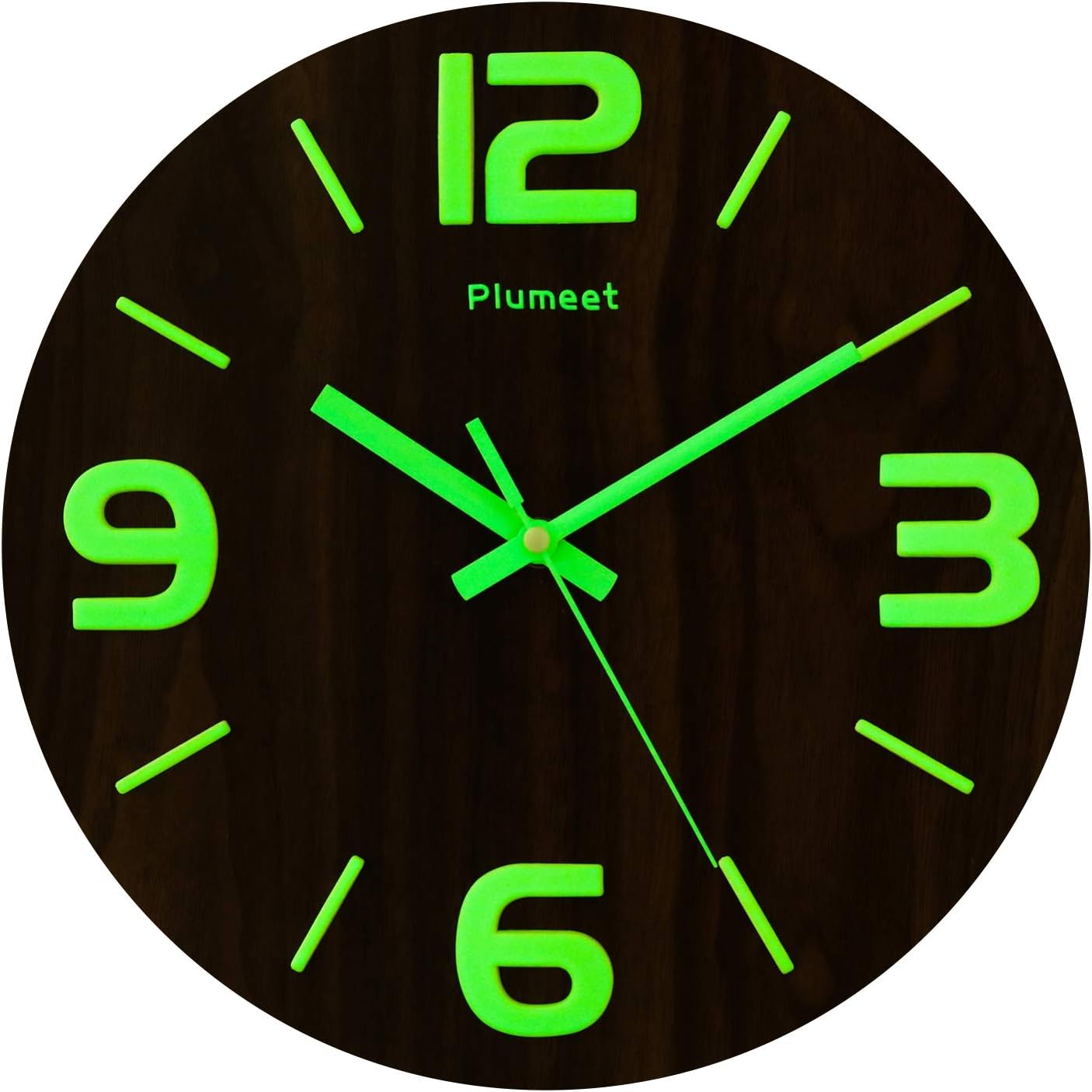 Plumeet 30cm Horloge Murale Lumineuse Numeros 3d Bureau Chambre A Coucher Grande Horloge Murale Decorative Pour Cuisine Pendule Murale Fluorescente Silencieuse Ameublement Et Decoration Pendules Murales