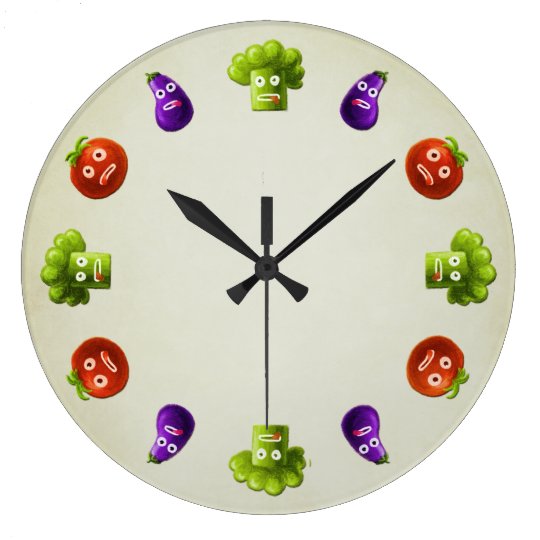 Grande Horloge Ronde Cuisine Drole De Legumes De Bande Dessinee Zazzle Fr