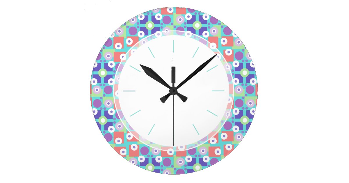 Grande Horloge Ronde Cuisine Geometrique Pourpre De Retro Aqua Genial Zazzle Fr