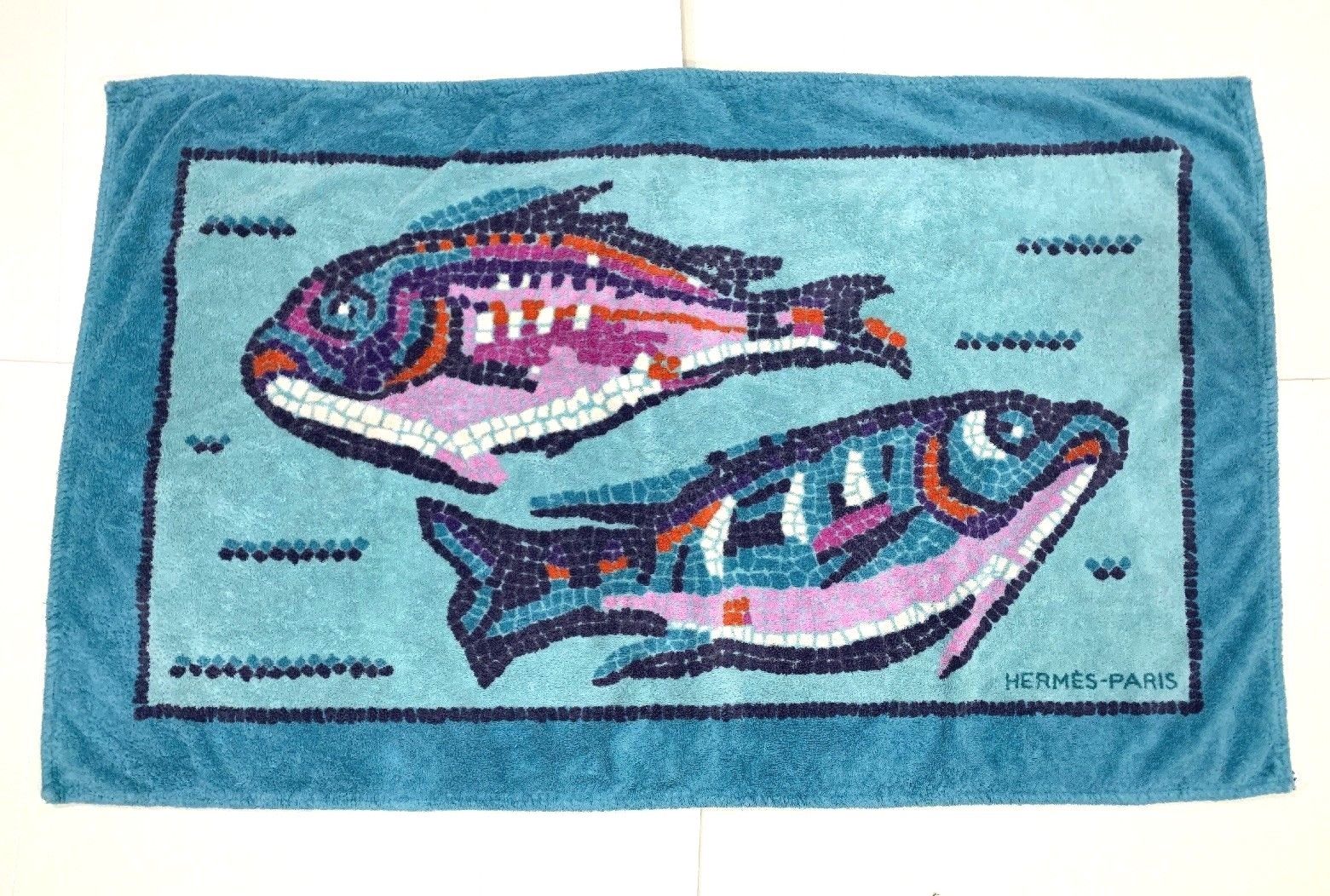 Vintage Serviette De Plage Hermes Poissons Drap De Authenticite Garantie Visible En Boutique