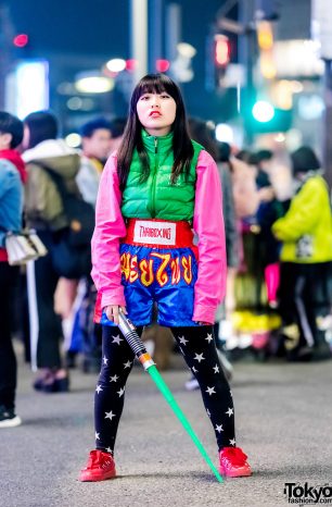 Harajuku Colorful Streetwear Style W Lightsaber Ralph Lauren Jacket Muay Thai Shorts Stradivarius Shoes Tokyo Fashion