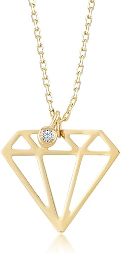 Collier Pour Femme En Or Jaune 585 14 Carats Avec Pendentif En Forme De Diamant 0 01 Chaine En Or Veritable De 45 Cm Amazon Fr Bijoux