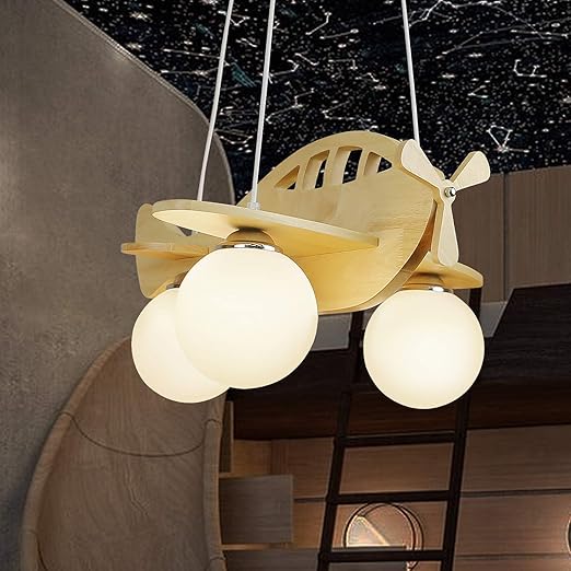 Mtx Ltd Plafonnier Nordique Simple Chambre D Enfant Lampe Fille Princesse Avion Lumiere Creative En Bois Massif Garcon De Bande Dessinee Garcon Chambre De Bebe Lustre Amazon Fr Sports Et Loisirs