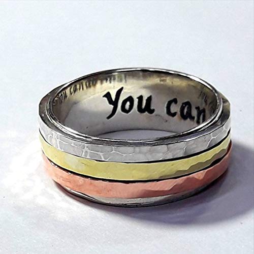 Deux Bague En Argent 925 Avec 3 Anneaux Spinner De Cuivre Laiton Et De Argent Avec Texture Martelee A Facettes Et Texte Personnalise Le Prix Est Pour Deux Bagues Amazon Fr Handmade