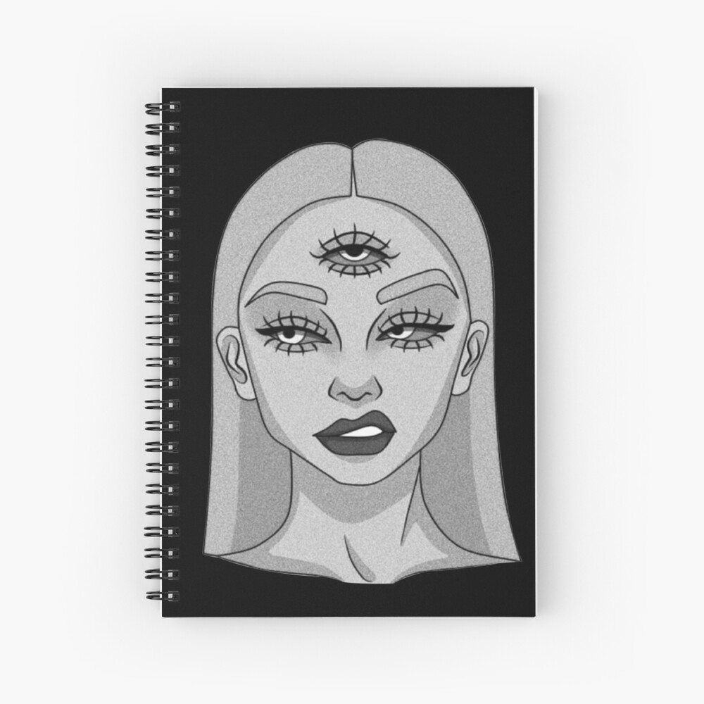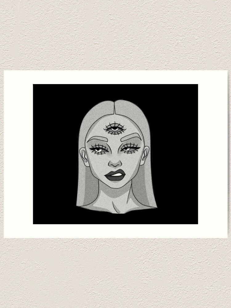 Impression Artistique La Jeune Femme Aux Trois Yeux Dessin B W Par Euror Design Redbubble