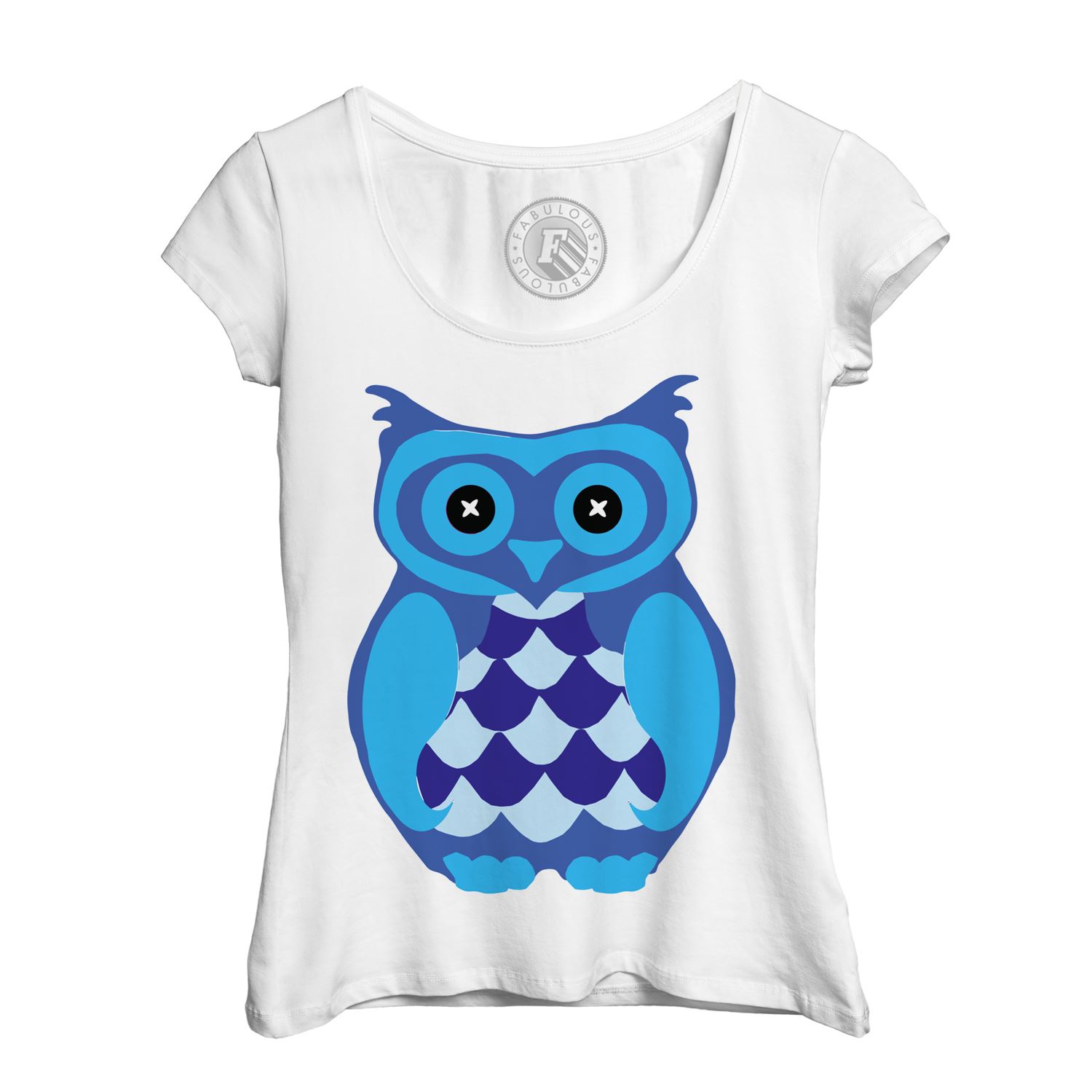 T Shirt Femme Chouette Bleue Yeux En Boutons Dessin Animaux Ebay