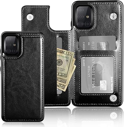 Noir Samsung Galaxy A51 Coque Emplacement Carte Support Samsung A51 Housse Flip Folio A51 Phone Case Housse Protection Samsung A51 Rabat Clapet En Cuir Pu Portefeuille Livre Samsung A51 Etui Telephones Portables Et Accessoires