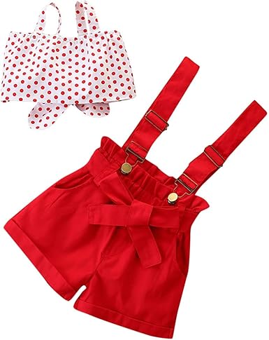 Dolcetiger Ensemble Bebe Fille Ete Vetements 2pcs Ensemble Gilet Sans Manches A Pois Pour Enfants Cuissard A Bretelles De Couleur Pure Rouge Pour 0 5ans Amazon Fr Vetements Et Accessoires