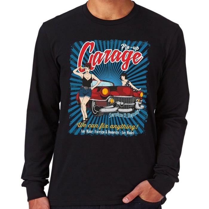 Pas Cher Homme Tee Shirt Homme Long Sleeve Tee Shirt Pin Up Vintage Garage Homme Fashion Tee Shirt Noir Achat Vente T Shirt Cdiscount