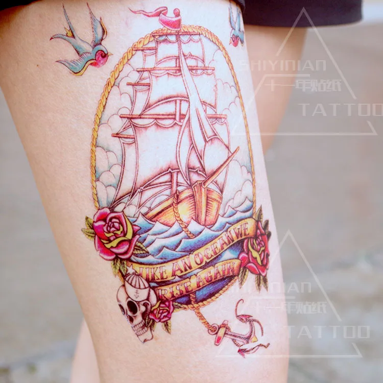 Tempoary Tatouage Corps Graphique Maquillage Autocollant De Bateau A Voile Avec Ancre Rose Crane Oiseau Mouche Sur L Ocean 1 Feuille 210x150mm Aliexpress