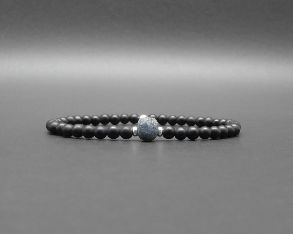 Bracelet Fin Homme Minimaliste Stretch Pierre Precieuse Saphir Brut Gemmes Onyx Noir Mat Perles En Argent O 4 Mm Un Grand Marche