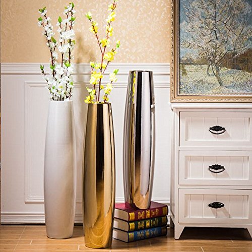 Zhfc Home Decor Zhfc Vase Electric Gold Plated 70cm Large European Style Living Room Floor Ceramic Vase Electroplated Silver And White Silver 18x72cm Buy Online In Mongolia At Mongolia Desertcart Com Productid