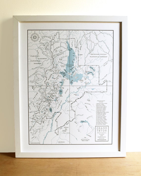 Grand Teton National Park Jackson Hole Letterpress Map Wall Etsy