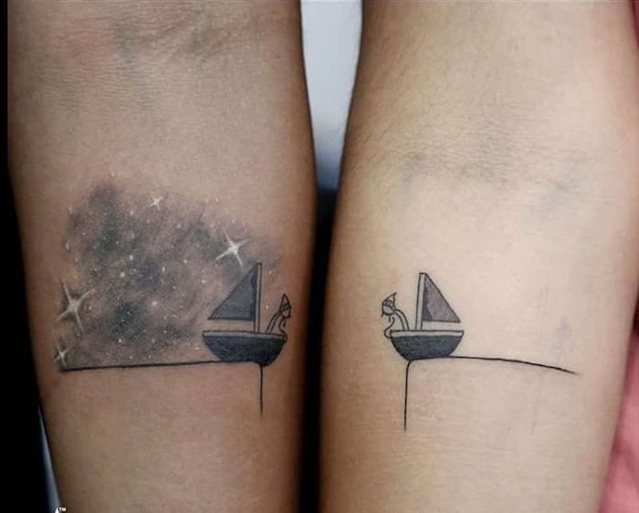 6 janv Découvrez le tableau "Dessins d'amour" de Karine Lepage Pellerin sur Voir plus d'idées sur le thème Tatouage, Tatouage couple, Dessin amoureux. Il existe des centaines de manières de le faire, mais sauter le pas et se lancer dans le tatouage de couple est une preuve d’amour incroyable Un tatouage, c’est pour la vie Et se tatouer en couple permet d’afficher à quel point on croit en notre relation, notre certitude que l’on vieillira ensemble, heureux et fiers du chemin accompli. Tatouage amour et fidelite, tatouage lune et soleil, moderne couple amour tattoo sur le poignet Tattoo Perfection Tatouages couple, nos 15 idées les plus romantiques Découvrez ce diaporama et partagezle à vos amis Tatouage couple hirondelles 15 idées de tatouages à faire à deux Elle.