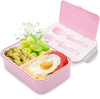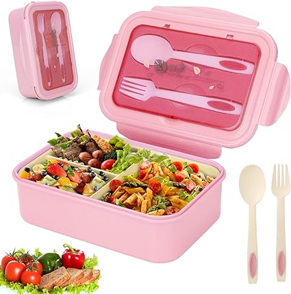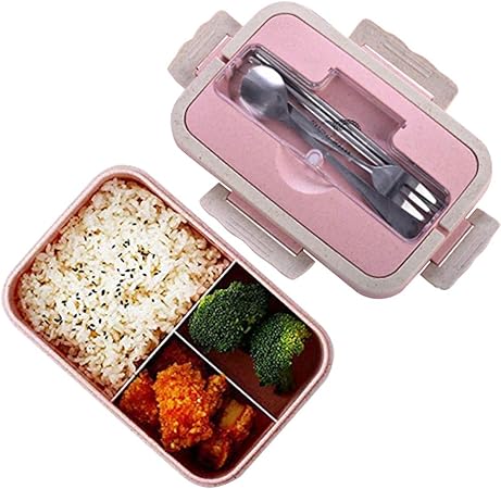 Sinwind Lunch Box Bento Box Boite Bento Boite Bento1400 Ml Avec 3 Compartiments Et Couverts Rose Amazon Fr Cuisine Maison