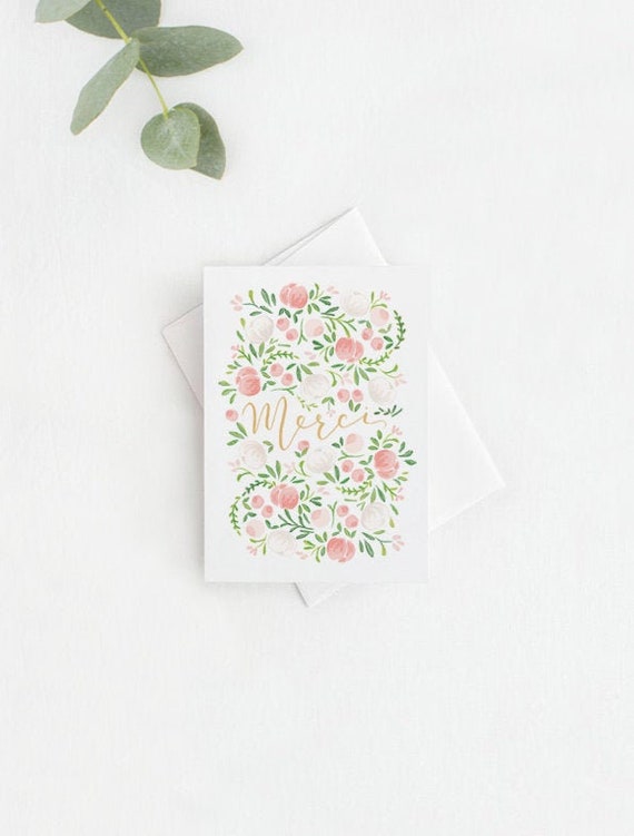 Thank You Card Greeting Card Merci Etsy