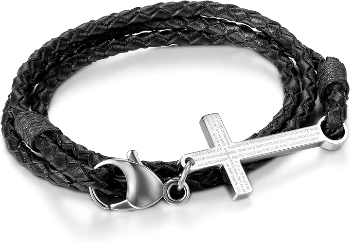 Jewelrywe Bijoux Bracelet Homme Tresse Manchette Croix Priere Cuir Acier Inoxydable Fantaisie Pour Homme Et Femme Couleur Noir Amazon Fr Bijoux