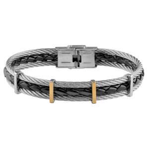 Adf Bracelet Homme Cuir Torsade Et Fil Acier Bijoux Homme