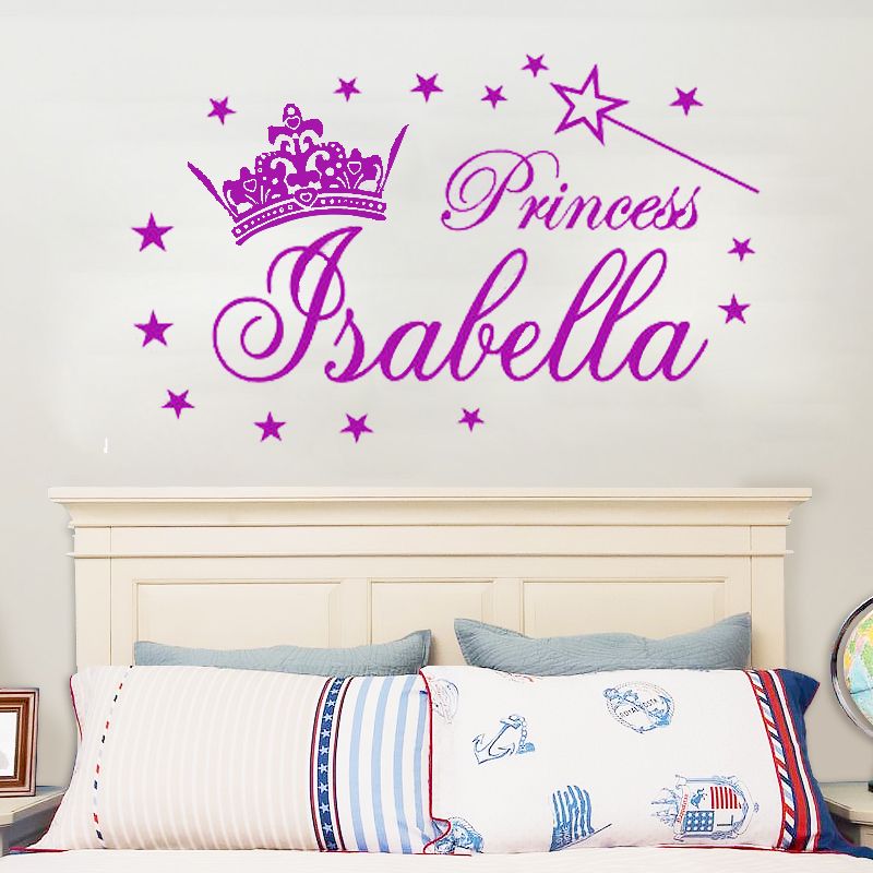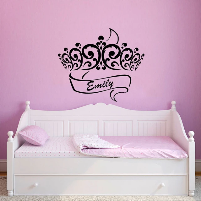 Personnalise Personnalise Princesse Couronne Princesse Stickers Muraux Bebe Filles Chambre Mur Vinyle Decor Vous Choisissez Nom Et Couleur Aliexpress