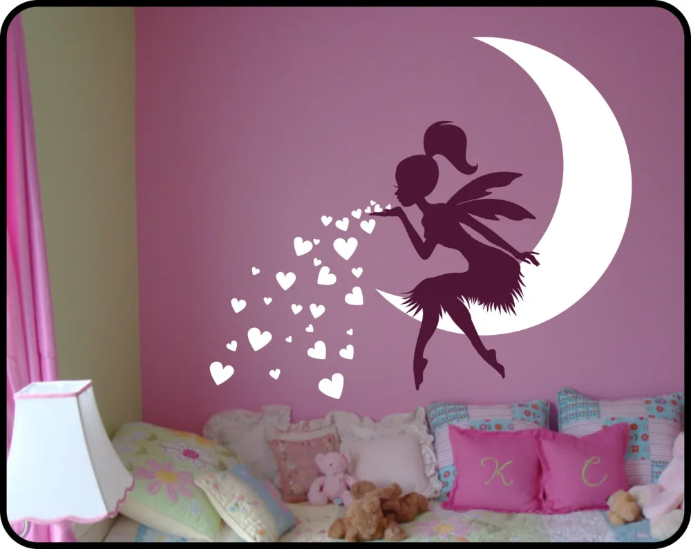 Princesse Fille Chambre Autocollant Mural Belle Fee Sur Lune Coeur Stickers Muraux Pour Enfants Chambre Bebe Pepiniere Art Mural Vinilos A531 Aliexpress