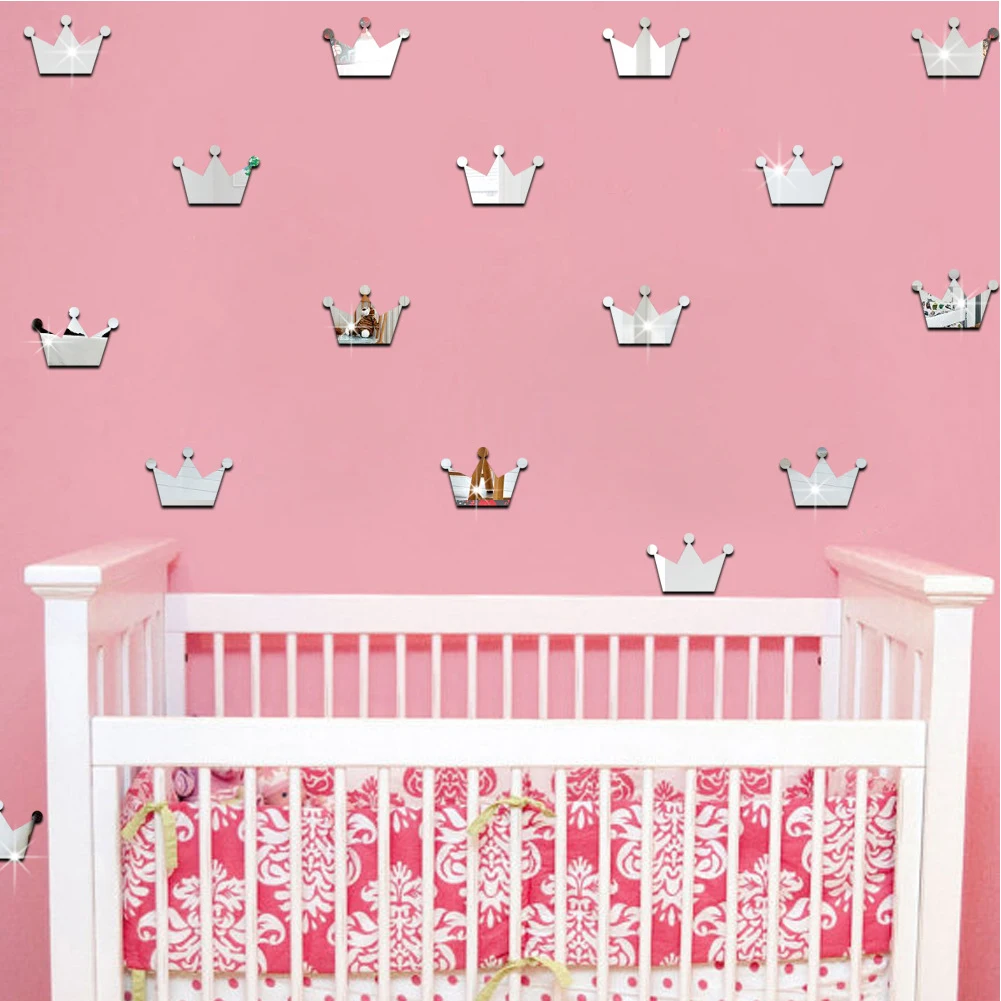 18 Pcs Lot Enfants Chambre 3d Acrylique Miroir Stickers Muraux Filles Princesse Couronne Forme Autocollant Decoration Murale Art Decalcomanies Aliexpress