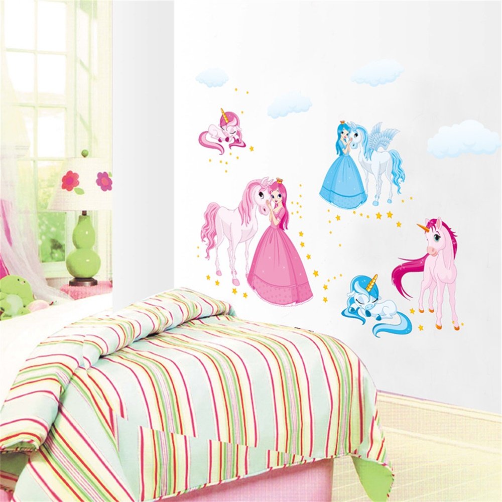 Decalmile Licorne Conte De Fee Princesse Stickers Muraux Nuage Cheval Amovible Autocollant Stickers Pour Chambre Bebe Chambre Enfant Chambre Pepiniere Accessoires Et Decorations Decorations Murales