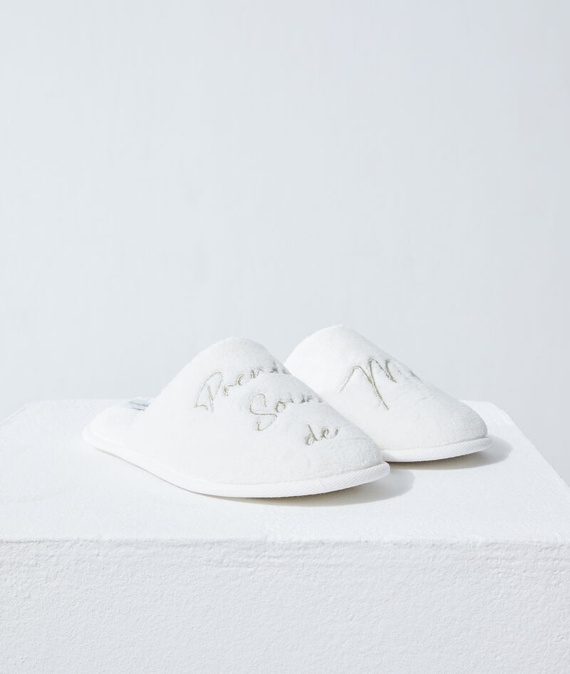 Chaussons Mules Prendre Soin De Moi Hotel Blanc Etam