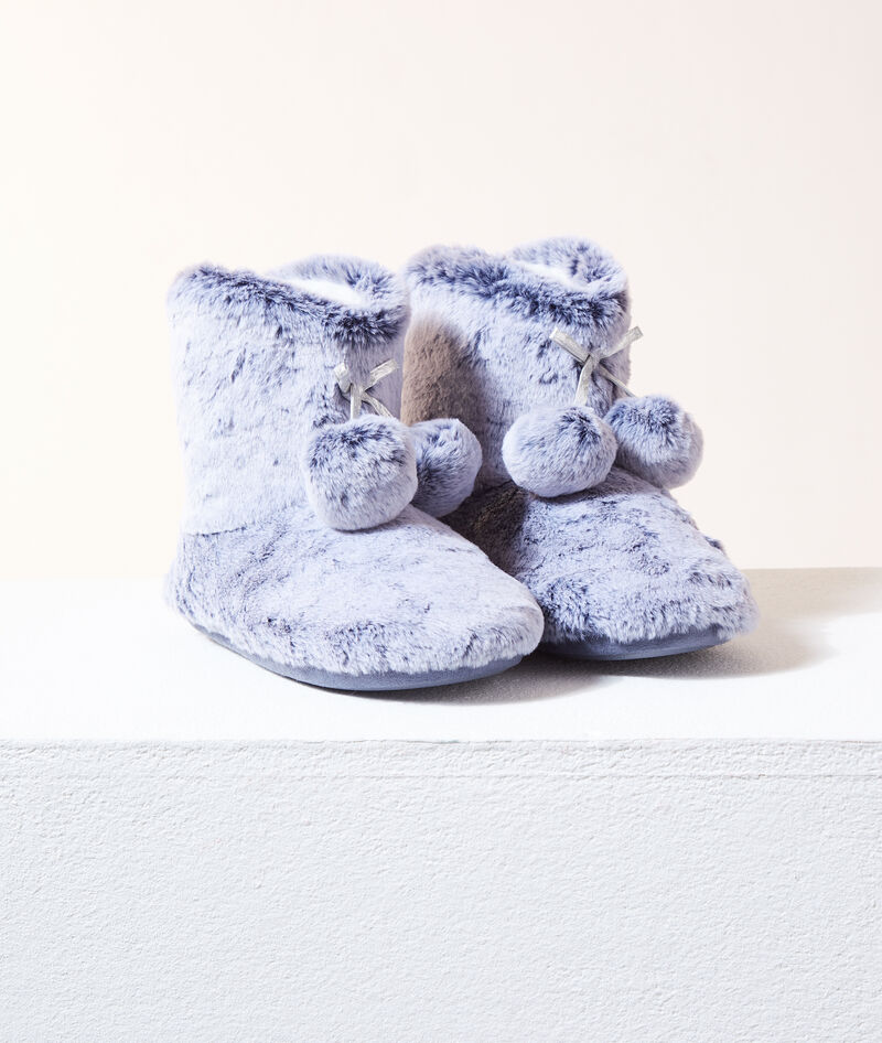 Chaussons Bottines A Pompons Jessie Gris Clair Etam