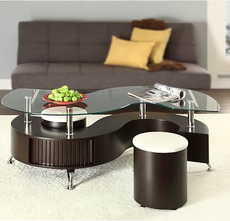 En Forme De S Curve Table Basse En Verre Avec 2 Poufs Simili Cuir Design Moderne Amazon Fr Cuisine Maison