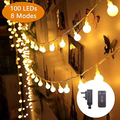 Fete Avec Eu Prise Sapin Noel Noel Mariage Guirlande Lumineuse Exterieure Interieure Fochea 12 M 100 Boules Guirlande Guinguette 8 Modes Eclairage Avec Telecommande Pour Decoration Chambre Guirlandes Lumineuses Jardin
