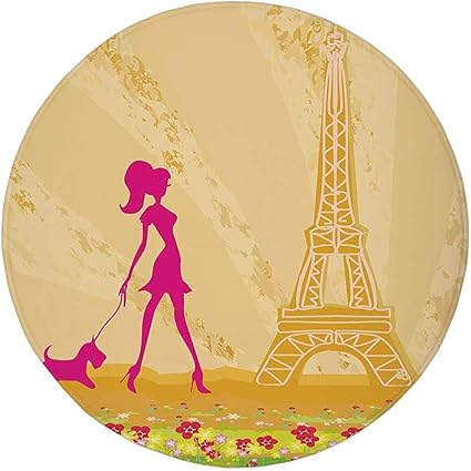 W Wee Tapis Rond Tapis Tapis Teen Room Decor Silhouette Rose D Une Fille Avec Le Chien Tour Eiffel Dans La Conception De Paris Abricot Hot Pinko Amazon Fr Cuisine Maison
