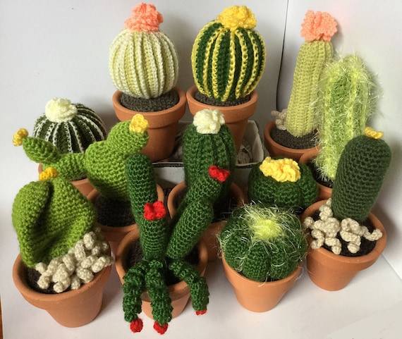 Large Crocheted Cactus With Flowers 6 Cm X 6 Cm Crochet Pot Fake Plant For Home Decoration Amigurumi Different Sizes And Colours Crochet Cactus Crochet Succulent Cactus Flower