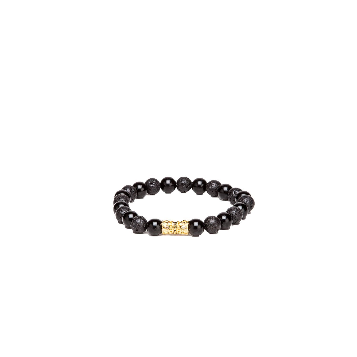 Buy Dapper Homme Black Beads With Golden Cylinderical Design Bracelet For Men At Amazon In