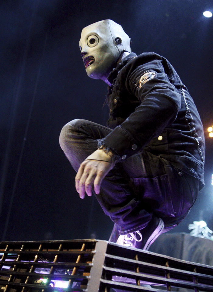 Slipknot @ Claremont Showgrounds (5 3 12) ()jpg 680 × 452;. Avouonsle, sans leurs instruments de musique, les membres du groupe Slipknot semblent tout droit sortis d’un film d’horreur Leurs masques, plus épeurants les uns que les autres, ont évolué d’un album à l’autre, devenant à la fois réalistes et troublants. Slipknot, l'un des groupes les plus médiatisé de la scène Métal, grâce à leurs tenues sur scène, masques & combinaison Mais quand les neuf se séparent, et que le chanteur (Corey Taylor) et le guitariste (James Root) tombent le masque, cela donne Stone Sour.