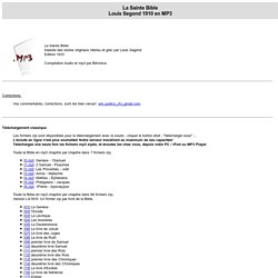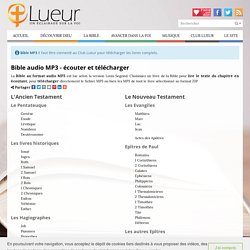 Lire la Bible autrement 5 24 Dieu dit « La terre fera sortir le vivant selon son espèce, bête, rampant, tout vivant de la terre selon son espèce » C'est ainsi 25 Dieu fit le vivant de la terre selon son espèce, la bête selon son espèce et tout rampant de la poussière selon son espèceNous voilà au sixième jour Le texte n'a pas. Toute la Bible en mp3 chapitre par chapitre dans 66 fichiers zip, Version LS1910 Un fichier zip par livre de la Bible La Genèse l'Exode Le Lévitique Les Nombres Le Deutéronome Le livre de Josué Le livre des Juges Le livre de Ruth premier livre de Samuel deuxième livre Samuel. Ecouter et télécharger la Bible audio / format mp3 Bienvenue sur l'espace Bible audio, vous pouvez écouter la Bible audio en français, mais aussi télécharger chaque livre de la bible au format mp3 Le player audio offre l'avantage d'enchainer la lecture des chapitres d'un même livre.
