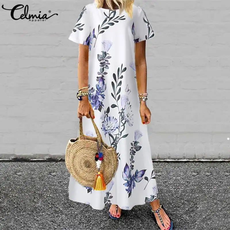 Robe Boheme 21 Celmia Femmes A Manches Courtes Imprime Florale Longue Maxi Robe D Ete O Cou Decontracte Ample Fete Plage Robe Vestidos 7 Aliexpress