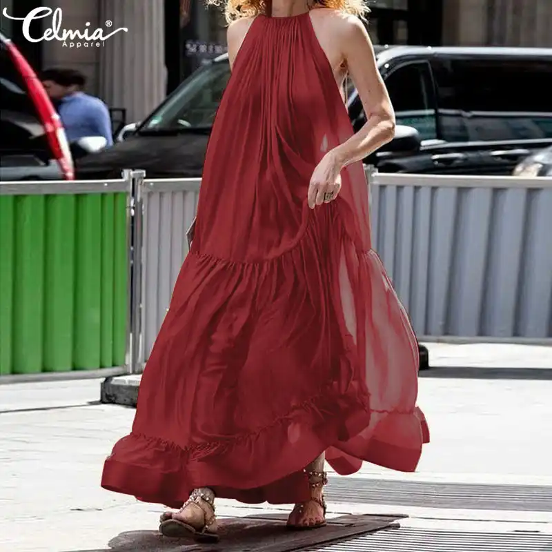 Celmia Ete Robe Boheme 21 Femmes Sexy Licou Sans Manches Decontracte Ample Swing Fete Maxi Robes Longue Chemise Vestidos S 5xl Aliexpress