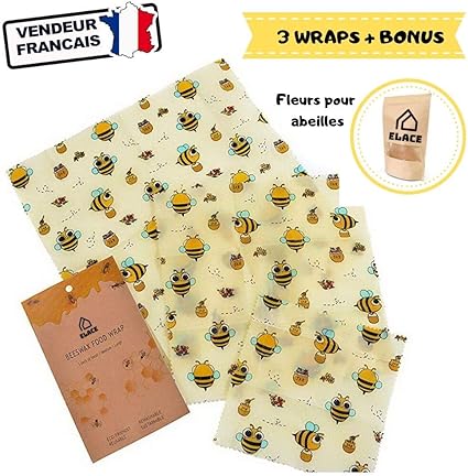 Bee Wraps 3 Emballages Alimentaires En Cire D Abeille Francaise Bio Reutilisables 2 Sacs En Tissu Coton Bio Pour Fruits Legumes 5 Produits Naturels Ecologiques Zero Dechet Cadeau Eco Responsable Amazon Fr