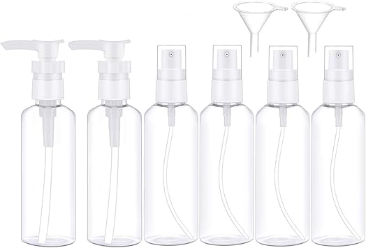 Bouteille De Voyage 6 Pcs Flacons Vide De Voyage En Plastique Transparent 2 Pcs Petit Entonnoir Pour Vacances Amazon Fr Cuisine Maison
