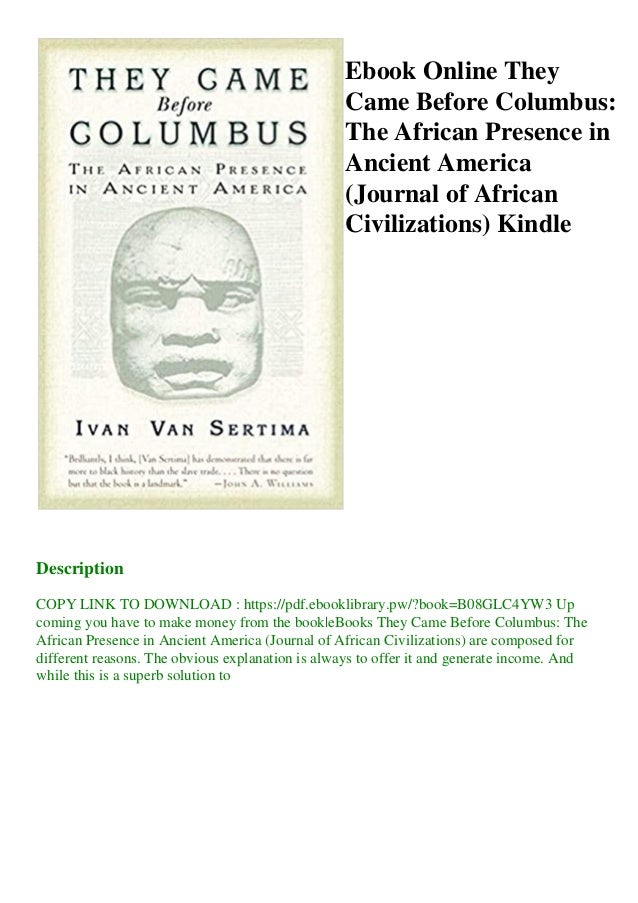 BLACK AFRICA AND AMERICA BEFORE COLUMBUSVan Sertima explores and gives all the evidence he can find about three contact periodsThe first one is between 800 and 700 BC, during the 25 th dynasty of the Egyptian Pharaonic civilization. They Came Before Columbus reveals a compelling, dramatic, and superbly detailed documentation of the presence and legacy of Africans in ancient America Examining navigation and shipbuilding;. They Came Before Columbus The African Presence in Ancient America This book makes it possible for us to see clearly the unmistakable face and handprint of Black Africans in PreColumbian America, and their overwhelming impact on the civilization they found here.