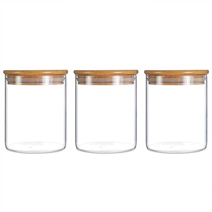 Bocal De Rangement En Verre Avec Couvercle En Bambou Pour Une Conservation Hermetique 500ml 3 Pack Amazon Fr Cuisine Maison
