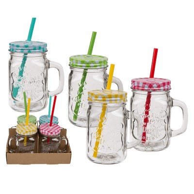 4 Bocaux En Verre Avec Anse Couvercle Et Paille Maplusbelledeco Com