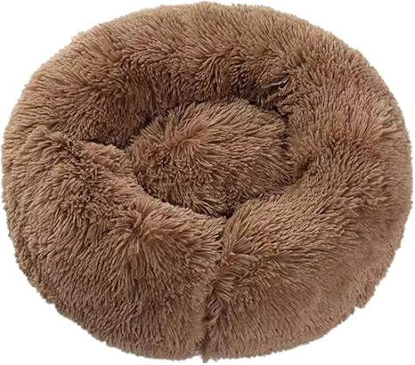 Lit Apaisant Pour Animaux De Compagnie Lit De Coussin Pour Chat Et Chien Nid Rond Chaud Et Moelleux En Peluche Confortable Shag Vegetalien En Fourrure Color Marron Size 15 75 Amazon Fr