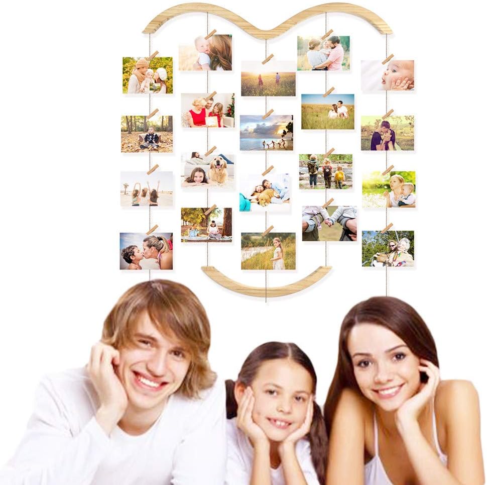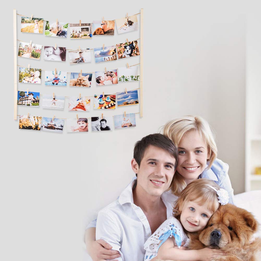 Uping Cadre Photo Pele Mele Cadre Photo Mural Avec Corde Et Porte Photo Pinces Couleur De Bois Naturel Decoration Maison Mariage Anniversaire Et Cadeau Ameublement Et Decoration Cuisine Maison