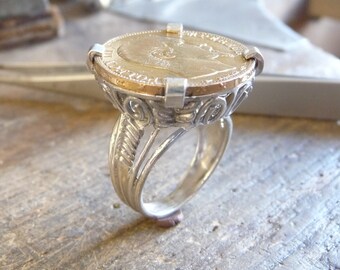 Bague Avec Une Piece De Monnaie 1 Franc En Argent