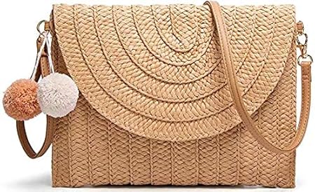Waymeduo Sac A Main De Fete De Plage D Ete Sac A Main De Soiree D Ete Pochette En Paille Enveloppe De Sac En Paille Tissee Sac A Main Tisse Light Brown 27cm Amazon Fr