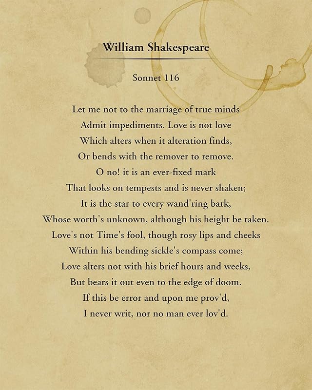 Amazon Com William Shakespeare Sonnet 116 Poetic Wall Art Sign 11 X 14 Inspirational Literary Wall Decor Vintage Parchment Poetry Print Ready To Frame Perfect Wall Decor For Home Office Studio Library Handmade